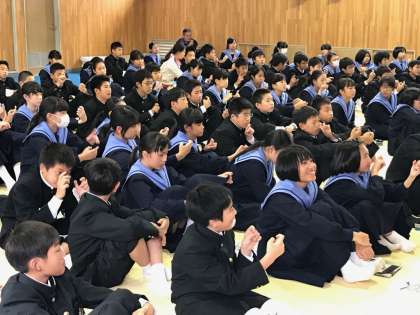 その後、中山先生から実際に手話・指文字を教えていただきました。交流当日、手話・指文字による自己紹介を全員がする予定なので、みんな一生懸命覚えようとしていました。声も出しながら、気持ちも込めてコミュニケーションをとってほしいと思います!