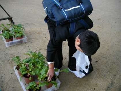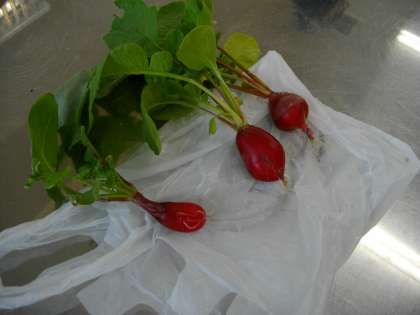 9月から栽培していたラディッシュがいよいよ収穫することとなりました。台風や天候不良で収穫時期が遅くなってしまいましたが。登校してきた人から順に収穫しています。