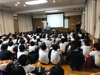 最初に、生徒会が中心になって作った、学校紹介ビデを見てもらいました。