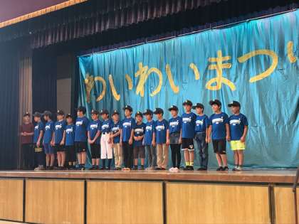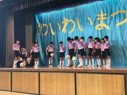 昨日、さわやかな晴天の下、中央小学校で「わいわい祭り」が開催されました。中央小学校開校以来続けられている行事で、もうすぐ30回目を迎えようとしているそうです。オープニングセレモニーでは、小学校の部活動の紹介などがあり、大いに盛り上がっていました。