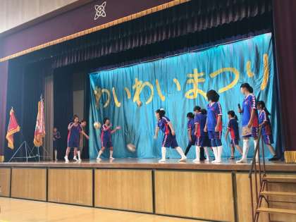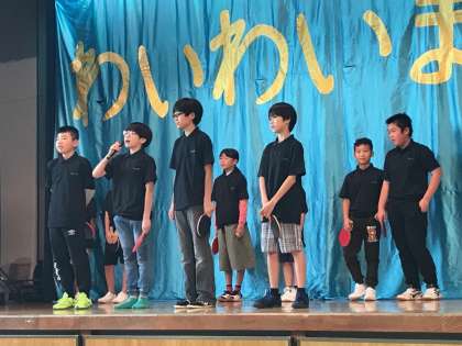 ゲームコーナーや飲食コーナーもあり、上中生も1・2年生を中心にたくさん参加していました。他の中学校へ進学した友だちと一緒に、楽しそうにおしゃべりしたり、飲み食いをしていたのが印象的でした。上中も含めてこれからも母校を大切にする気持ちを大切にしていってくださいね!