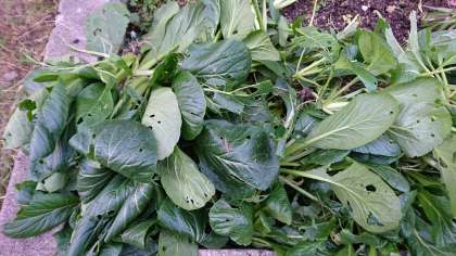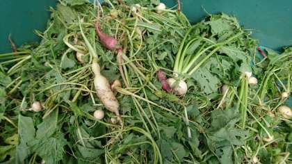 秋〜冬野菜の、白カブ・赤カブ・ミニ大根・小松菜を収穫しました。