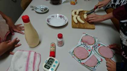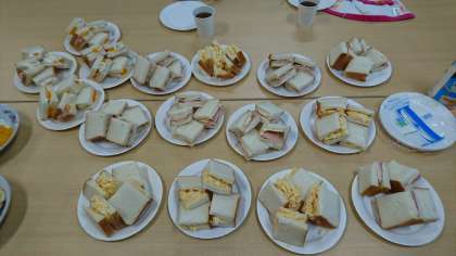 期末テストの最終日、青空学級の1年生女子は調理実習でサンドイッチを作りました。