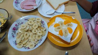ホイップクリームにミカンとバナナをのせて、フルーツクリームサンドを作りました。