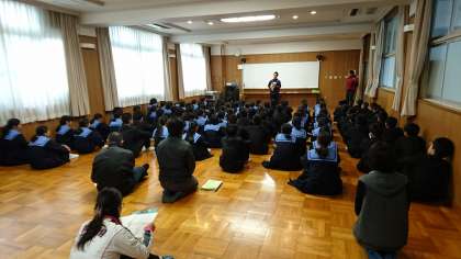11/30(金)放課後、明日1年生は初めての防災学習なので、学年集会で事前指導を行いました。