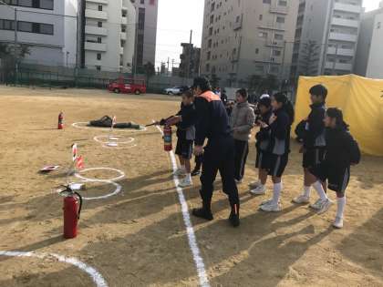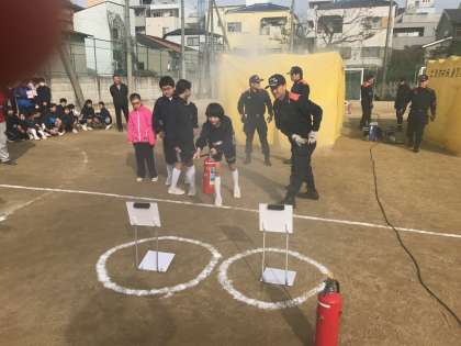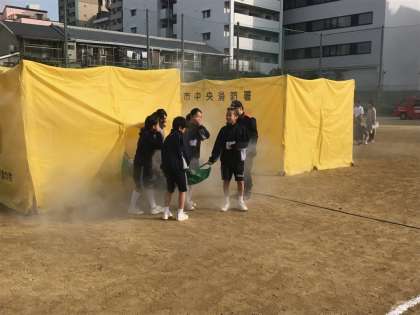 1年生は消防署の方々の指導のもと、煙テントでの物探し、消火活動、人命救助という複雑な使命を班ごとにこなしていきました。この体験は、貴重だと思いました。