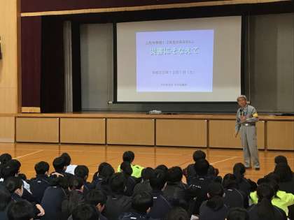 1・2年生は各学年の活動終了後、体育館に集まり、区役所の方から地震等の災害に関するお話、被災した時の大切なポイントなどを聴きました。
