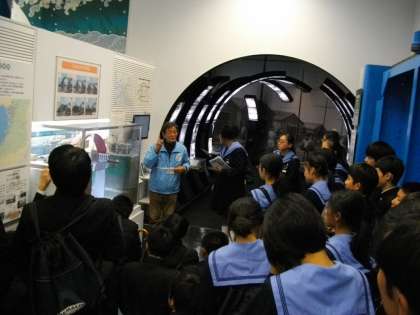 学校を出発して、大阪メトロに乗り「津波・高潮ステーション」へ行きました。