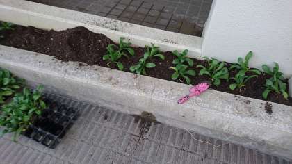 さらに、残りの苗は、管理作業員さんが玄関前の花壇やプランターに移植する予定です。