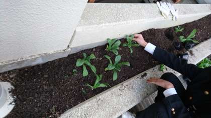 残りの苗を、園芸部で中庭の花壇に移植しました。(写真)