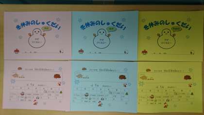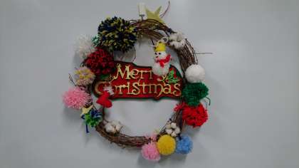 一足早く青空学級では、クリスマスリースの飾り付けをしました。(写真上・中)