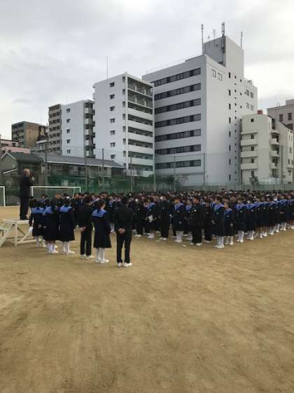 本日は寒い朝となりましたが、上中生は元気に生徒集会を行いました。校長先生からは12月10日「世界人権デー」のお話がありました。歴史的な背景・経緯も含めてのお話でした。ただ、世界人権宣言が国連で採択されてから今年で70周年という節目の年でありながら、今だに世界のあちこちで戦争・紛争が続いており、人種や国の違いによる差別や人権侵害が起こっています。また、日本の中でも、いじめや虐待、SNSなどによる人権侵害など、みんなの人権がきっちり守られているとは言えません。この節目を一つのきっかけにして、上中で全員の人権が本当に守られているのか、嫌な思い、つらい気持ちになっている人はいないかをしっかり考えてほしいと思います。