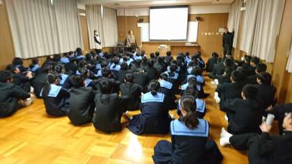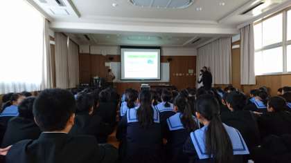12/18(火)4限目、1年生は学校薬剤師の先生を講師に招き、薬物乱用防止教室をしました。