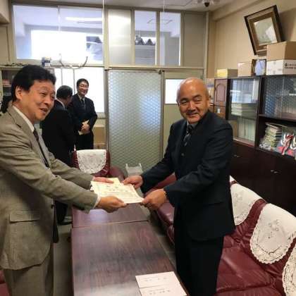 先日HPで紹介した、税の作文の表彰式と朗読の表彰状と記念品を届けに、本日南納税協会の方々が本校を訪れ、校長先生に8人の表彰者の賞状と記念品等が授与されました。特に3年の酒井さんが受賞した近畿納税貯蓄組合会長賞は、文部大臣賞に次ぐ近畿では2番目に優れた賞で、応募数何万作のなかから選ばれたそうです。受賞された8人のみなさん、おめでとうございました。終業式で、校長先生から表彰してもらう予定です。楽しみにしていてください。