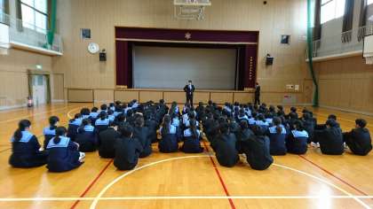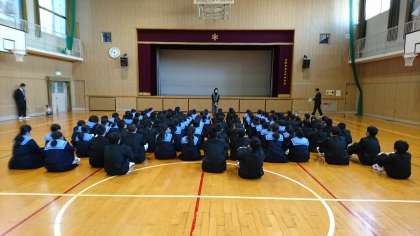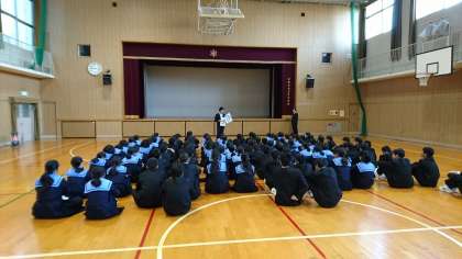 1年生は体育館で、冬季休業中の諸注意がありました。