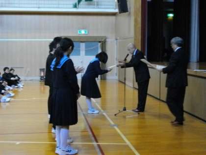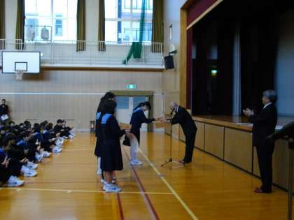 本日は2学期の終業式が行われました。校長先生からは、2学期を振り返って自分はどこがどれだけ成長したのかを一人ひとり確認してほしい。成長できていない人もいるのではないか。また、先生によって、相手によって態度を変えている人はいないか。恐そうだから、優しそうだからなど関係なく、誰の話も同じ姿勢・態度で聴けるのが当たり前。態度を変えるような卑怯な人間にはなるな、という厳しめのお話がありました。みんな、自分はどうなのか、しっかり振り返ってくださいね。