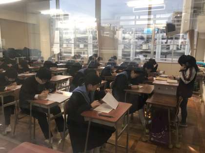 本日より、3年生の実力テストが行われています。第5回目で3年生にとっては最後の実力テストになります。自分たちが受験する私立高校等もほぼ決まり、みんな真剣そのものの表情でテストに取り組んでいます。全員が実力を出し切れることを祈っています。頑張れ、3年生!
