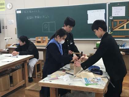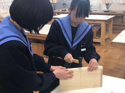 釘がなかなか真っ直ぐ打てずに、苦戦しているところもありましたが、みんなで協力して上手に作業を進めていました。技術室の後ろに貼ってある「みんなができる みんなでできる」という合言葉通りの作業ができていたので、大変感心しました!