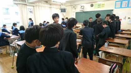 1/10(木)5限目、1年生は2/7(木)の「かるた(百人一首)大会」に向けて、班分けをしました。