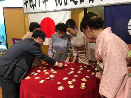 後半、女性部による新年らしい「貝合わせ」が行われ、成績に合わせて景品が配られました。地域の皆様、今年も上中生の健やかな成長のために、ご指導・ご支援よろしくお願いします。