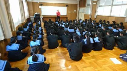 今回は学年主任の先生から、「風邪やインフルエンザによる欠席者が少しずつ増えてきたので、うがい手洗い等、健康管理に気を付けよう。」という話がありました。