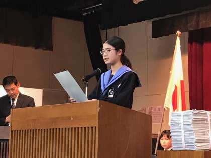 1月19日(土)にアネックスパル法円坂において、「入選作文表彰式」が行われました。上中からも3人の人が受賞しました。中学生の部 最優秀賞に2年生の山本友梨子さん、入選に2年生の木戸脇奈々さん、藤井悠生音さんが選ばれました。