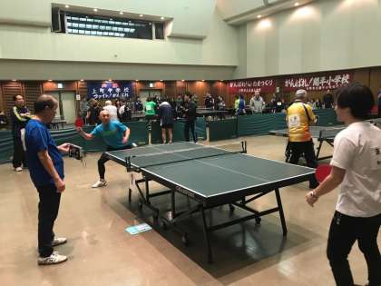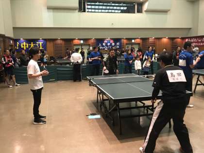 そんな中、女子の部では毛利さんが順当に勝ち進み、決勝進出を果たしました。決勝では大ベテランとの対戦になり、始めは劣勢でセットカウント0−2になった時は万事休すと思われましたが、ここから驚異の粘りを見せ、2−2に追いつき、ファイナルセットまで持ち込みました。