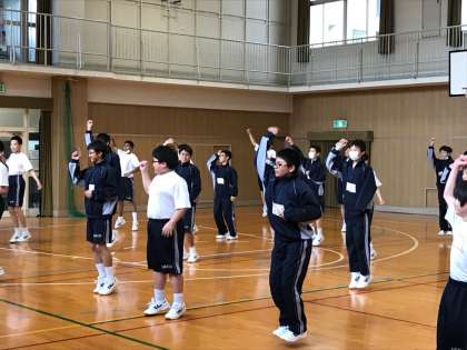 1年男子の体育は、ダンスに取り組んでいます。今の学習指導要領では、男女ともダンスと武道を履修しなければなりません。慣れない動きと音楽に合わせる難しさで苦戦を強いられている人が多数見られましたが、楽しそうに踊りを覚えていっていました。佐々木先生曰く、「こちらが思っているより早く覚えるんですよ。」というのが毎年の感想だそうです。今年の1年生もダンスを楽しんで覚えて、完成した踊りを披露してほしいと思います。