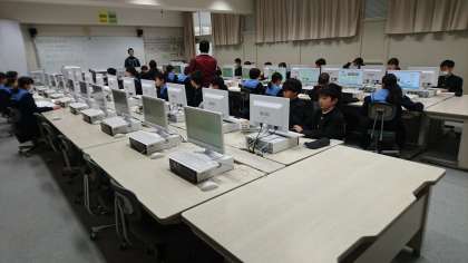 3/4(月)1年生は、前回から引き続き、キャリア教育(進路学習)の一環として、PC教室でインターネット上の「EduTownあしたね 職業調べワークシート(中学生版)」サイトにログインし、自分の性格に適した仕事・職業や、興味のある職業について詳しく調べました。