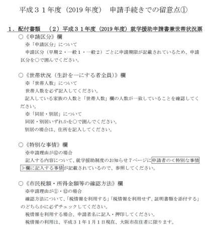 (1)平成31年度 (2019年度) 就学援助申請書兼世帯状況票