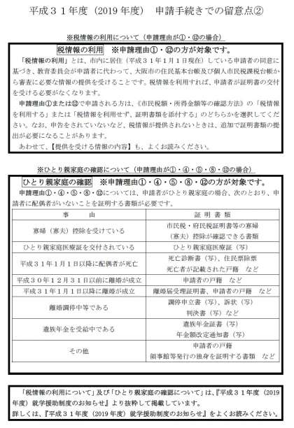 (2)証明書類・・・就学援助制度のお知らせに記載