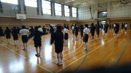 まず、生徒実行委員による開会式の後、体育委員による準備体操をしました。(写真上)