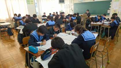 3/13(水)卒業式前日の1〜3限目、1年生はキャリア教育(進路学習)の一環として、「職業新聞」を作りました。(写真上)