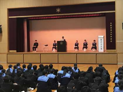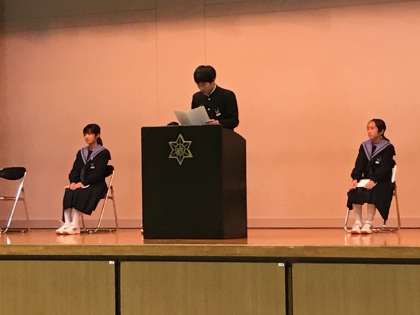 最後は、選挙管理委員からの投票に対する注意事項が伝えられ、再び委員長の挨拶で演説会が終了しました。各クラス、教室へ戻って投票ですが、ふざけることなく、立候補者の気持ちをしっかり受け止め、真摯に投票しましょう!結果は明日の朝、玄関ロビーに貼り出されます。