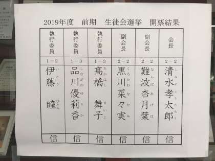 前期生徒会役員選挙結果