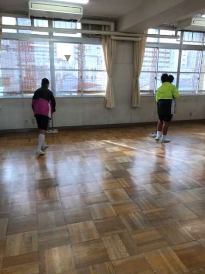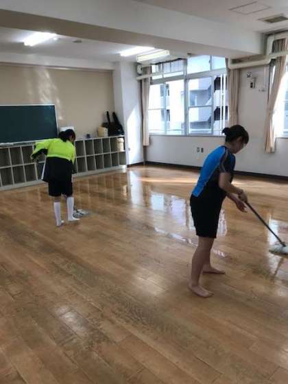 まず教室の水拭きをし、その後ワックスをかけます。毎回のことですが、終学活も終わり下校時間や部活動の時間にもかかわらず快く仕事をしてくれます。本当にありがたいことです。
