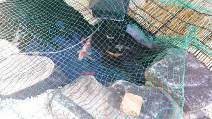 玄関の桜も満開、始業式までもってほしいですね。そして、池の鯉も、のぞくと、池の奥から元気な姿を見せてくれました。春を感じます。