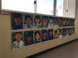 今、1年生の教室前廊下に、美術の時間に作成した自画像の色つき版画を展示していま...