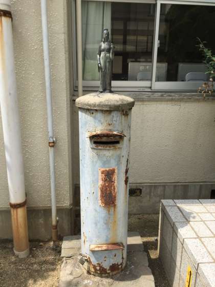 ○友情ポスト・・・中庭にある不思議な「友情ポスト」はご存知ですか?よく見てみると中央には「友情」と書かれています。 上には小鳥を手に乗せた女性が一人。仏像にも見えます。 実はこのポスト、かつて、昼食が食べられない子への募金箱として使われていたそうです。 パンを買ったり、何かのお釣りが余った時に、昼ご飯を食べられない友達のためにカンパをするための募金箱。 友情ポストだったそうです。 「優しい生徒が多い西中学校」は、昔からの伝統だったのかもしれませんね。