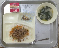 本日のメニューは、ごはん 牛乳 豚肉の甘辛焼き とうふのみそ汁 じゃこピーマン ...