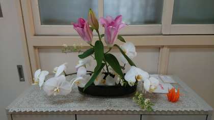出勤すると、校長室前のお花を綺麗に活け替えてくださっていました。