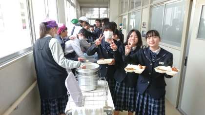 2年生廊下でカメラを向けると、「撮ってください!」と笑顔でピースサイン!