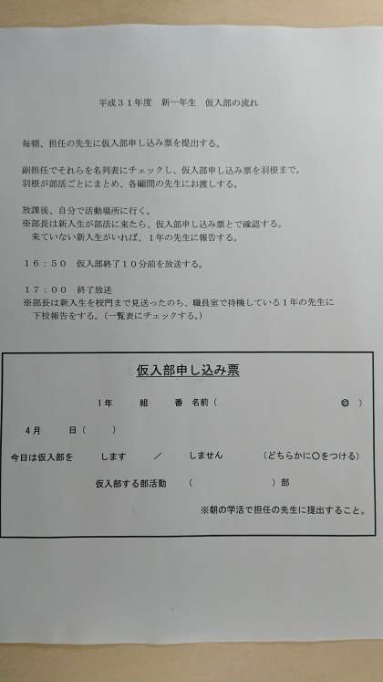 昨日「部活動紹介」を終え、本日から新1年生「仮入部期間」です。