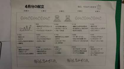 4月分の献立表