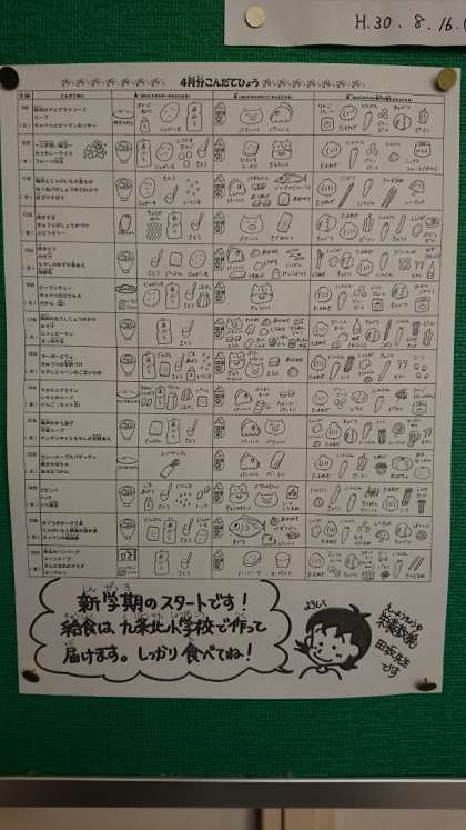 日々の献立とともに、4月分の献立表も掲示しています。