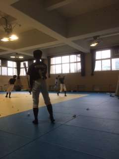 今日は朝から雨のため、朝練は武道場などでシャトル打ちをしています。
