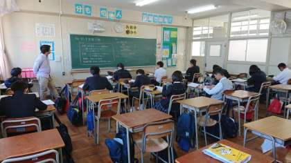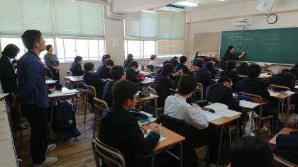 4月25日(木)に続いて、本日も、1時限目 3年1組 分割授業、2時限目 1年2組において、数学科「研究授業」を行いました。