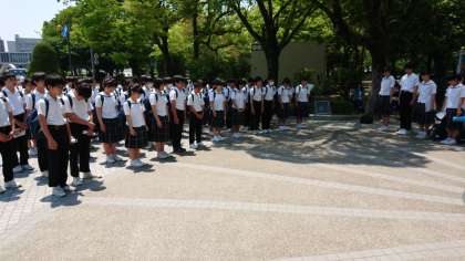 平和宣言、千羽鶴奉納、そして黙祷を捧げました。