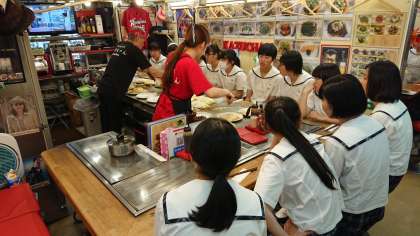 お昼ごはんは、お好み村で、広島お好み焼きです。