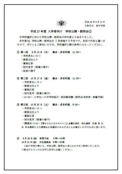 本日は西区中学校選択制度に向けた、学校公開・説明会でした。